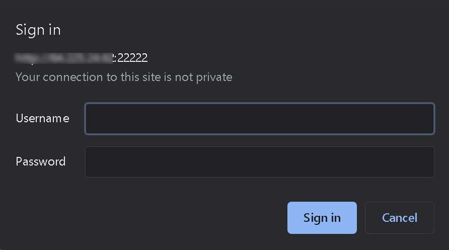 Enter your IP address plus a ‘:22222’ in your address bar, and enter the username: