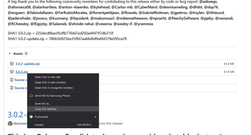 The next step is to download the Mautic package from Github. You should select the latest stable release and copy the link address by clicking the right mouse and selecting ‘copy link address‘ in the menu.