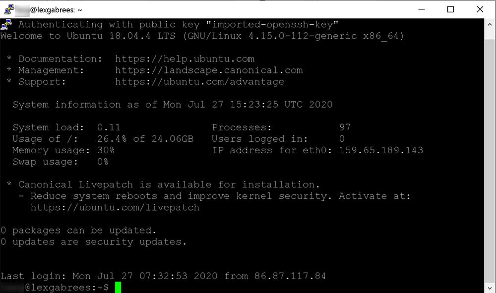 After logging into your server you’ll automatically end up in the Linux command prompt (CLI). This is where you’ll start configuring the server and install Mautic.