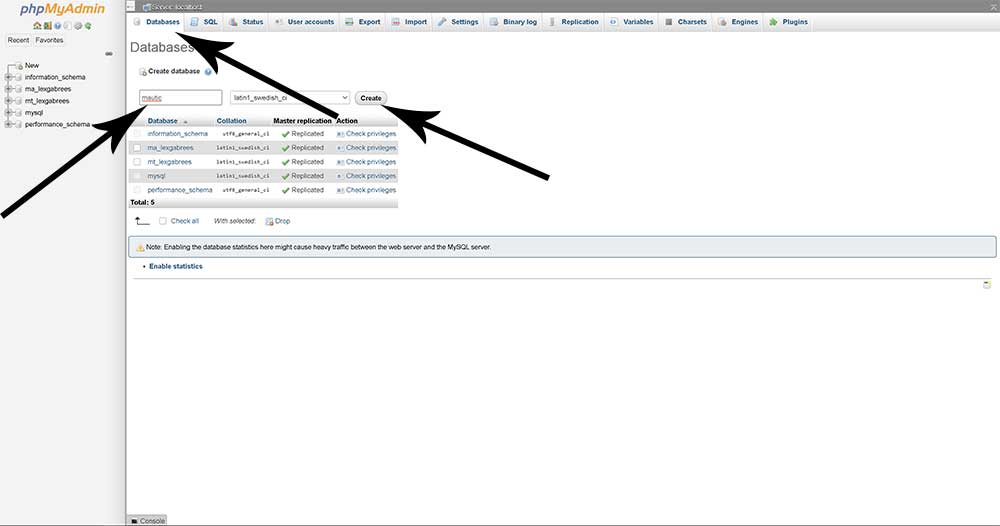 As mentioned, Webinoly also installs some administration tools on your server. One of the applications it installs PhpMyAdmin (PMA), which allows you to create the Database that Mautic needs to function.