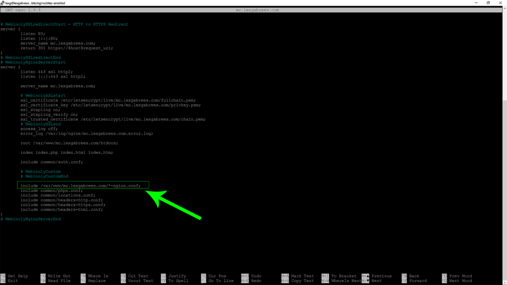 Next, you have to make a change in the original Nginx configuration file, in order to include this extra configuration.